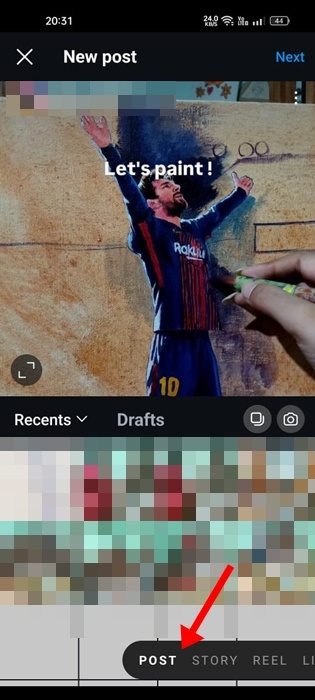 Вам не нужно создавать отдельные аккаунты для использования Threads; вы можете просто использовать свой аккаунт Instagram, чтобы начать работу. В мобильном приложении Instagram также есть функция автоматической публикации ваших публикаций или записей в ленте. Поэтому, чтобы максимально расширить охват на разных платформах с минимальными усилиями, вам следует напрямую делиться своими публикациями в Instagram или Reels в темах. Если вы активный инфлюенсер в Instagram, вы можете автоматически делиться своими публикациями в Instagram с Threads. Вот что вам нужно сделать. 1. Обязательно обновите приложение Instagram из Google Play Store или Apple App Store. 2. Запустите приложение Instagram и нажмите значок (+) в нижней части экрана. 3. Перейдите на вкладку «Опубликовать» в нижней части экрана. 4. Выберите публикации, которыми вы хотите поделиться, и нажмите « Далее» . 5. На экране New Post прокрутите вниз до раздела Share To. Затем включите переключатель рядом с вашей учетной записью Thre