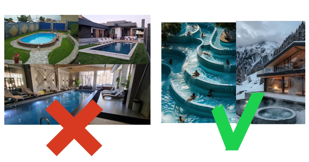 Ко мне за консультацией обратились руководители компании, которая проектирует и строит бассейны. Их запрос - увеличить средний чек и количество заказов в 2 раза за год и выйти на всероссийский рынок. Владельцы хотели расширить географию заказов и выйти на московский рынок. В таком случае единственной площадкой для взаимодействия с потенциальными заказчиками является сайт и соцсети. Ключевой рекомендацией было подобрать фотографии и иллюстрации, которые транслировали бы готовность компании взять на себя стильный, масштабный и дорогой заказ. Но была проблема: все кейсы были сфотографированы абсолютно непригодно для того уровня, к которому стремится бюро. То есть, примерно так: А надо, чтоб на сайте было так: Бюро обладает техническими компетенциями для таких заказов, поэтому по части профессионализма мы бы не вводили потенциального клиента в заблуждение такой подборкой. Заявлять о своем вкусе и стиле через визуал. Многие часто забывают, что архитектура - это еще и эстетика, а не тольк