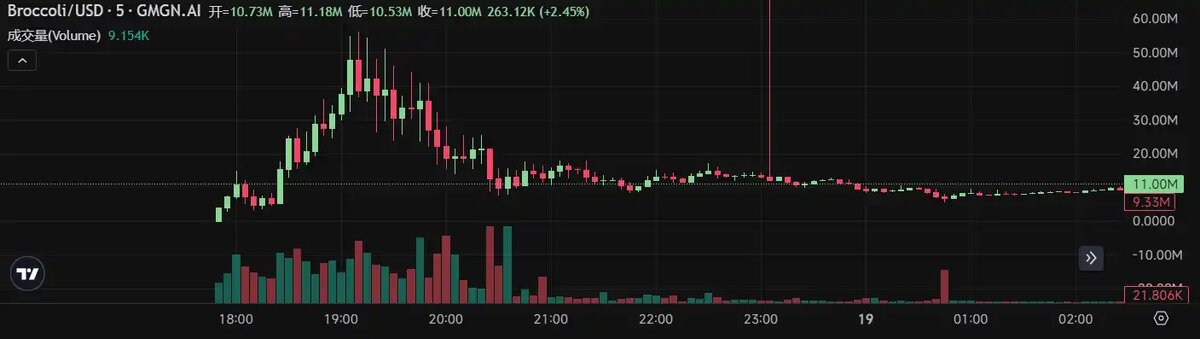 18 февраля в 18:00, когда история «Собака CZ» уже немного затихла, она внезапно активизировалась. В это время был выпущен новый $BROCCOLI, который быстро вырос, достигнув рыночной капитализации в 50 миллионов долларов всего за полтора часа, а сейчас его капитализация стабилизировалась на уровне около 10 миллионов долларов. Этот токен не только стал популярным благодаря ренессансу, но и тесно связан с недавними событиями вокруг $LIBRA и «благотворительной помощи».
