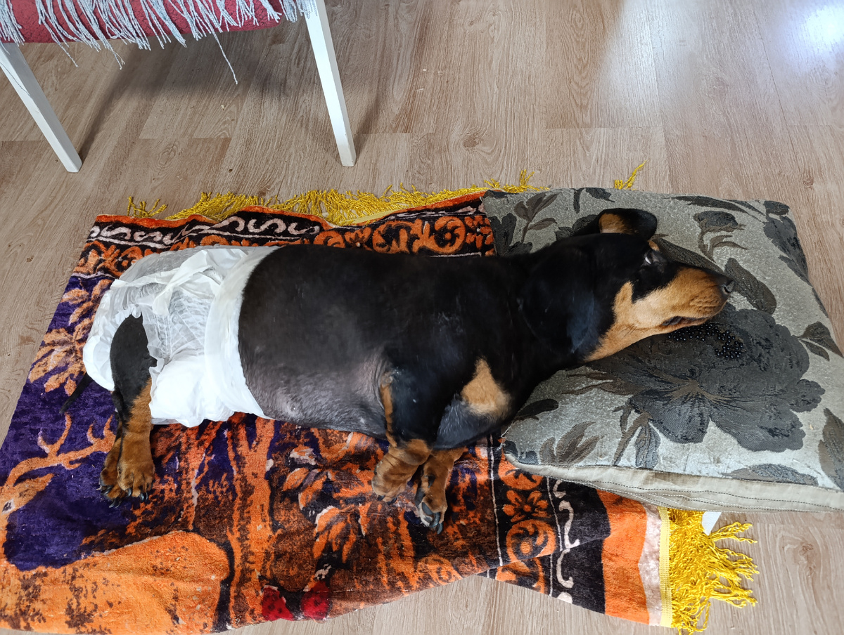 Добрый день всем! Большое спасибо всем за добрые слова поддержки. Да, Изюмчика больше нет. Как это произошло? Месяц назад у Изюма отказали задние лапы.Мы возили его в клинику, делали рентген позвоночника, но причину не выяснили, назначили лечение.Через два дня он встал на лапки, стал потихоньку ходить, даже ходил с нами на прогулку. А неделю назад мы стали замечать , что лапки опять подкашиваются. И вдруг, придя с работы, обнаружили его лежащим на полу. Болезнь стала быстро прогрессировать, лечение не помогало. Прявился стул с кровью, началось недержание. Изюмчик угасал. А в последние дни постоянно скулил, у нас начались бессонные ночи. В воскресенье наступил конец. Спи спокойно , мой преданный пёс. Да, к сожалению так бывает, век у наших питомцев не долгий. На моём веку это третье прощание. Первый был кот Дымок, мы его взяли котёнком в первые дни после свадьбы. Дымок прожил 12 лет. Дальше был Вегас. Даксибест Лас-Вегас, по паспорту, из питомника. Умный, очень воспитанный, интел