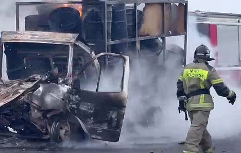 Грузовик загорелся на новой трассе А-289 в Краснодарском крае