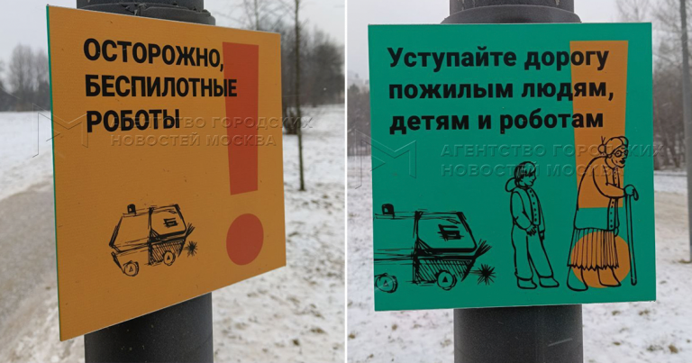В парках Москвы появились указатели с просьбой уступать дорогу роботам