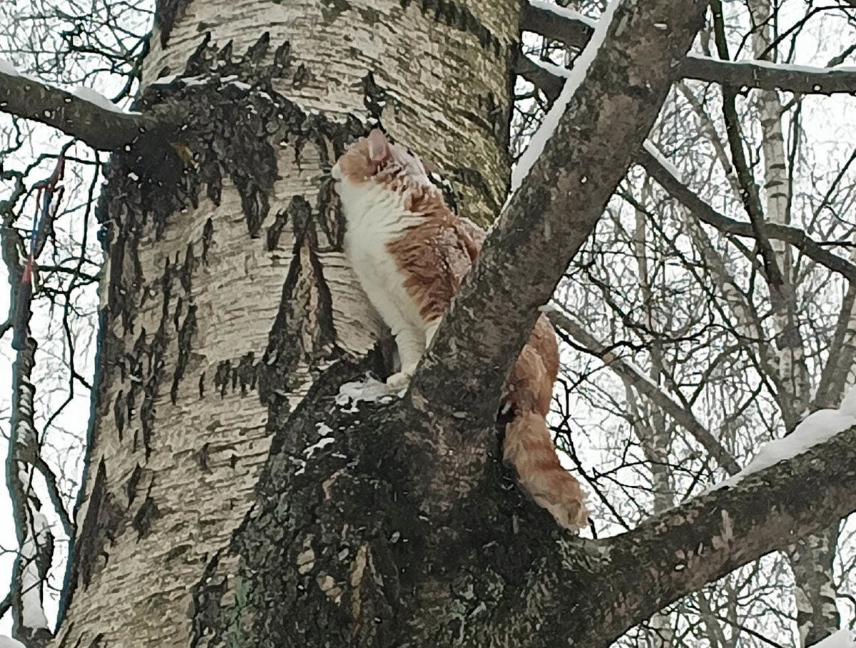 В Петербурге рыжий кот провел целые сутки на дереве после того, как хозяйка оставила его на улице при морозе -10 градусов. Инцидент произошел в парке «Серебряный пруд» на Институтском проспекте. Испуганный зверь забрался на дерево и начал громко мяукать, что привлекло внимание прохожих. Они вызвали специалистов из «Кошкиспаса», сообщили в пресс-службе организации. Снять кота с дерева удалось бы с первой попытки, если бы он не выскользнул из рук и не перескочил на соседнее дерево. После этого неудачного опыта животное стало еще более настороженным, забралось выше и не подпускало никого к себе. К счастью, история завершилась благополучно. Специалист «Кошкиспаса» вернулся с альпинистским снаряжением и забрался на дерево без лестницы. Он аккуратно снял кота и передал его заботливым петербуржцам для временного укрытия. Ранее сообщалось, что в Петербурге полиция задержала мужчину, который жестоко обращался с собакой на глазах у прохожих.