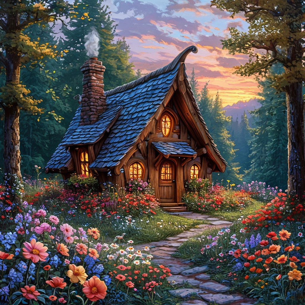 И оказался он на опушке леса. Глядь – избушка стоит симпатичная такая, ставенки резные, окна расписные. А вокруг избушки на полянке цветочки растут. Залюбовался Иванушка, сильно ему избушка да цветочки понравились. Присмотрелся – из трубы дымок идет, а ветерок запахи вкусные приносит. Почувствовал добрый молодец, что устал он в пути да проголодался. Да и солнышко уже на закат пошло, сумерки вот-вот наступят. Решил к хозяевам на ночлег попроситься.