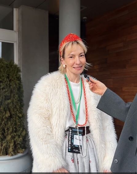 Ведущая рубрики «СтильНо» Наташа Ветрова посетила масштабный бизнес-нетворкинг в Волгограде и прямо спросила у участников: сколько стоит их образ и где они его купили? Так, внимание стилиста сразу привлекла необычная блондинка в кокошнике и с этническими мотивами в наряде. Оказалось, что Раиса Гунько также работает стилистом и еще визажистом. Она честно призналась, что образ сшила своими руками из ткани «русская рогожка». И материал, и ремень модница заказывала на маркетплейсе, а свитшот покупала в «Чижике». Самыми дорогими оказались сапоги, которые обошлись в 9 тысяч со скидкой. В общей сложности, образ вышел примерно на 15 тысяч рублей. Раиса Гунько Руководитель журнала «Антенна-Телесемь» Осана Салосина рассказала, что надела жакет индивидуального пошива. В целом, ее образ, выполненный на заказ, обошелся примерно в 30 тысяч рублей. — Меня нарядила мама. Я же КМС по стилю. Как переводится КМС? «Как мама сказала». Все, что на мне, это — мама, она хочет, чтобы сын был радостный и с детс