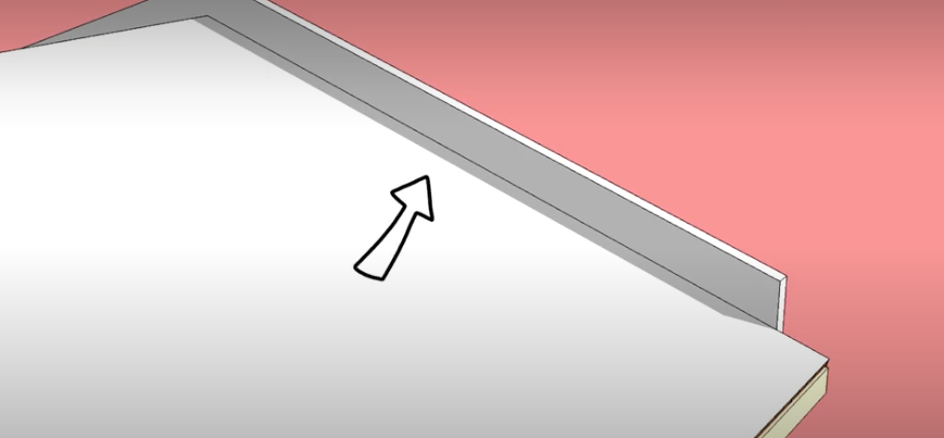Выравнивая по ровной линии мастики, и начинаем прижимать его. Сначала к скату, а потом прижимаем снизу вверх в вертикальную поверхность.