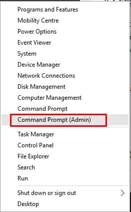 1. Сначала щелкните правой кнопкой мыши кнопку «Пуск» в Windows и выберите пункт «Командная строка (администратор)».