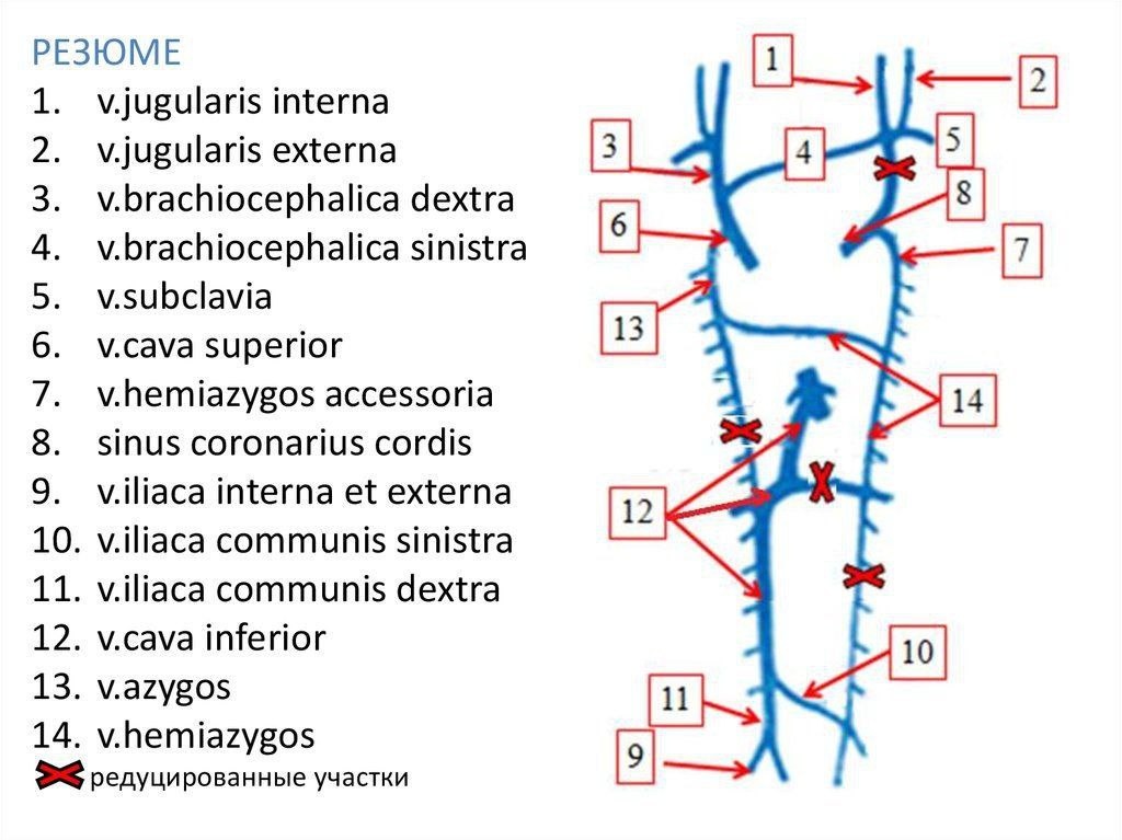 ➡️ в области головы и шеи - передние кардинальные вены (правая и левая) и