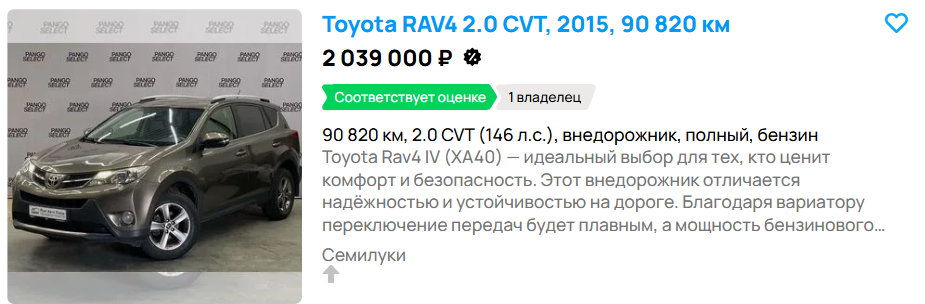 RAV4 — это действительно кроссовер, который выбирают за надёжность, ликвидность и комфорт. Пробег чуть более 100 000 км для него — лишь разминка. Двигатели ходят сотни тысяч километров, подвеска справляется с российскими дорогами, а салон остаётся живым даже на 200.000 км+. Главное — проверять историю машины и состояние вариатора. В целом, это один из самых беспроблемных вариантов в своём классе до 2 млн рублей.