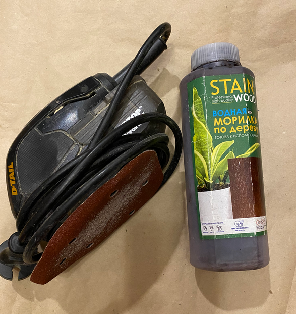 В предыдущей статье я рассказала про ремонт своей маленькой кухни только в части устройства пола. Остальной ремонт - это поклейка обоев, замена фартука и шлифовка столешницы с последующим покрытием маслом. Это обычные работы, никаких хитростей там нет. Столешница - дубовая, 4 см толщиной за 15 лет, конечно, пообтерлась. Я ее зачистила маленькой шлифовальной машинкой с мелкозернистой шкуркой: