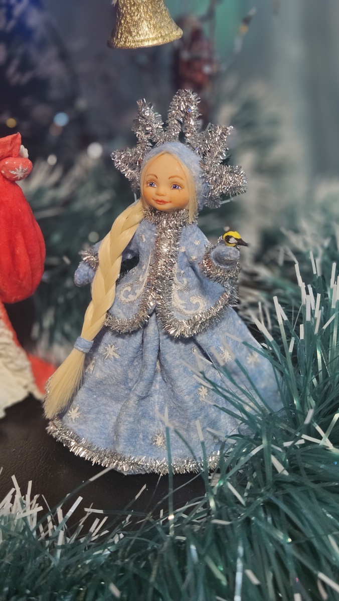 Всем привет! В этой статье я постаралась собрать те материалы, которыми пользовалась во время работы над девочкой Снегурочкой. Я уже говорила, что новогодних волшебников запросил под свою ёлочку младший сын. Это был интересный опыт и он полностью удался, я считаю))) Итак, что по материалам... Каркас делала из медной проволоки толшиной 0.8, брала на ВБ. Артикул 33931805. Обматывала ватой MATOPAT, она есть на меркетплейсах, я свою купила в аптеке. Окрашеная вата с добавлением вискозы с ВБ. Артикул 193037522. Клейстер я варю из картофельного крахмала. Для промазывания ваты использую кисть "кошачий язычок" синтетическую, покупала в Леонардо. Опушку шубки и кокошник делала из синельной проволоки, так же с ВБ. Артикул 273385235. Личико Молд с Озон. Артикул 1416977014. Для личика использовала холодный фарфор с ВБ. Артикул 16880348. Для волос трессы для кукол покупала в Леонардо. Но в работе с ними было сложно, капризный материал, нужно приноровиться, буду пробовать и учиться. Для
