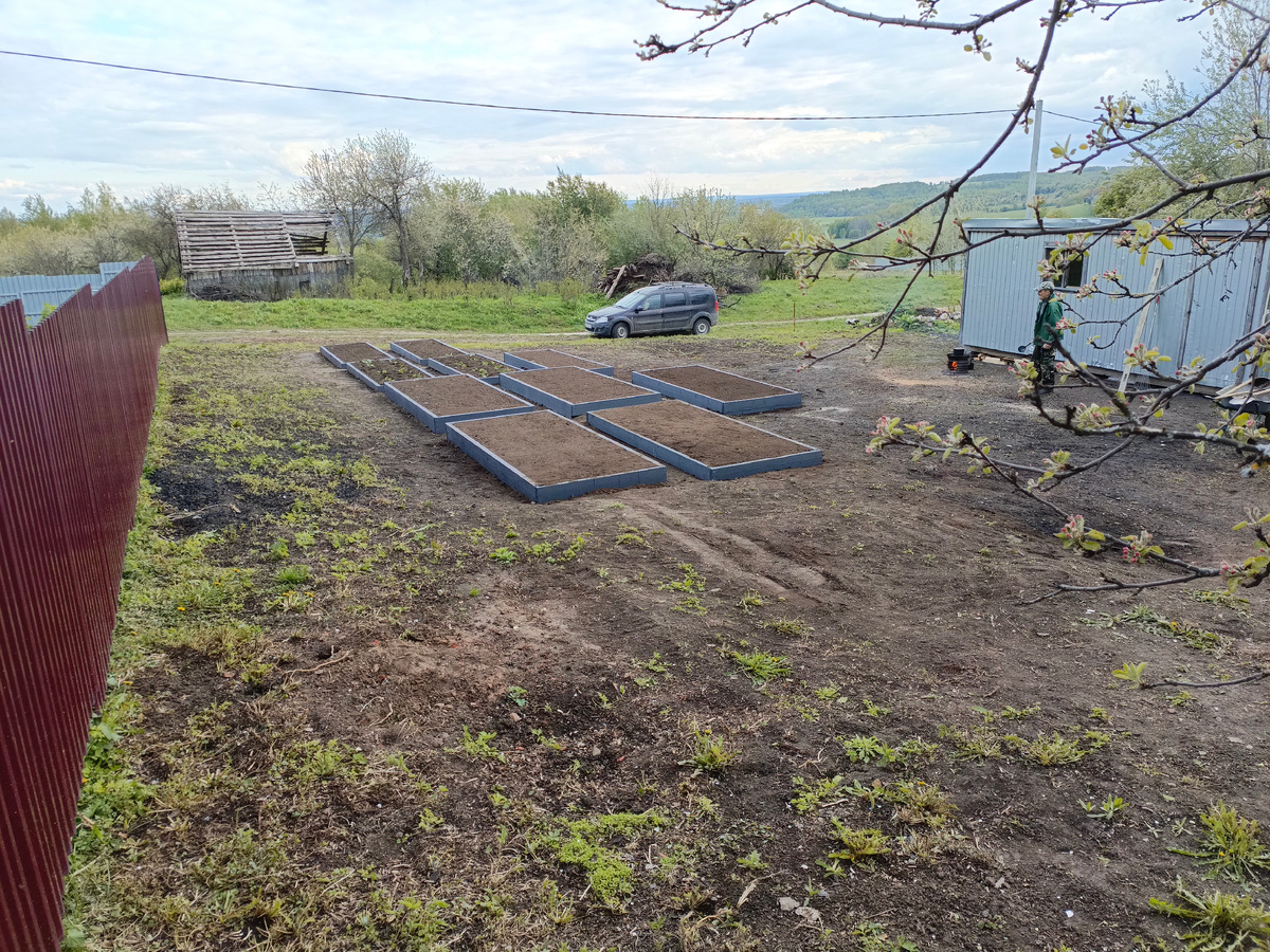 Весеннее тепло освобождает деревню от снега, теплый ветер высушивает участок и мы приступаем к первым садовым работам на нашем участке. На малый участок осенью завезли КАМАЗ плодородной земли для первых грядок. И это было правильное решение! Хотели сверху раскидать землю и формировать грядки, но весной подняло много мелкого мусора - в основном это гвозди и битый шифер. Принимаем решение ставить насыпные грядки, а затем весь участок будем грабастать садовыми граблями.
