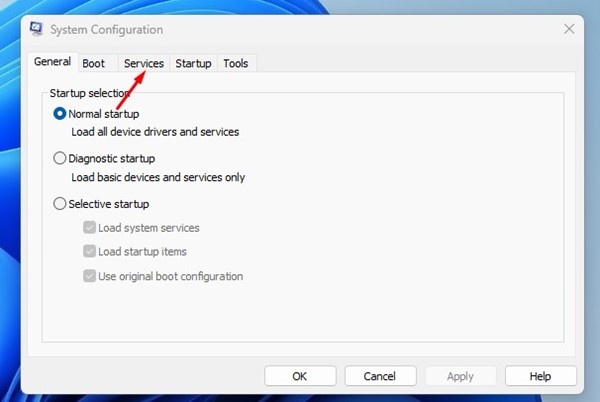 2. В приложении «Конфигурация системы» перейдите на вкладку «Службы» .