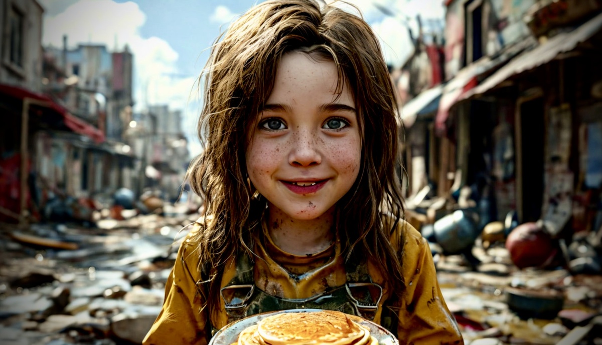 Город лежал в руинах, засыпанных пеплом вечной зимы. Снег, смешанный с сажей, хрустел под сапогами Артёма, пока он пробирался сквозь развалины бывшего супермаркета. За спиной дрожала Настя — девочка лет десяти, его случайная спутница. Она держала потрёпанный рюкзак, куда он складывал всё, что ещё можно было считать едой: банку тушёнки, пачку засохших макарон, и… — Мука! — выдохнул Артём, вытягивая из-под обломков полки полураскрытый пакет. Настя замерла, глядя на белый порошок, словно на золотой песок. — Сегодня Масленица, — прошептал он, и в его голосе впервые за годы прозвучало что-то, кроме усталости. *** Костер трещал посреди заброшенной площади, где когда-то гулял праздник. Теперь вокруг были лишь тени разрушенных домов да вой ветра в разбитых окнах. Артём замешивал тесто на талой воде, а Настя, обернутая в три шарфа, следила, как он выливает жидкую массу на раскалённую плиту, найденную в руинах кафе. — Блины, — сказала она, словно вспоминая забытое слово. — Мама раньше п