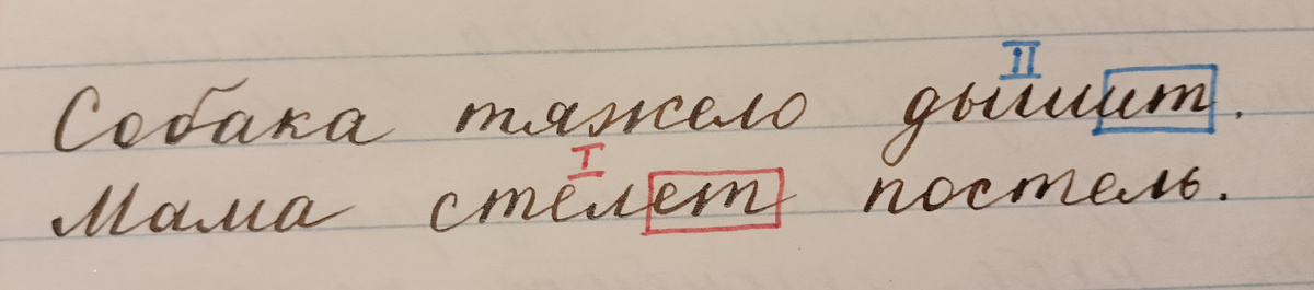 1. Проверка домашнего задания. 2. Актуализация знаний и объявление темы урока. - Как определить спряжение глаголов по неопределенной форме? На доске записаны предложения: Собака тяжело дыш...т. Мама стел...т постель. - Вставьте пропущенные буквы. Дышать - оканчивается на -ать, значит 1 спряжение, вставляем букву Е. Стелить - оканчивается на -ить, значит 2 спряжение, вставляем букву И. К сожалению, вы попали в ловушку. Есть глаголы, которые не подчиняются правилам. Они называются глаголами- исключениями. Вот с ними мы сегодня и познакомимся. 3. Работа по теме урока. Познакомьтесь с глаголами - исключениями: К 1 спряжению относятся два глагола: брить и стелить, хотя они оканчиваются на -ить. Ко 2 спряжению относятся 11 глаголов: гнать, держать, смотреть, видеть, дышать, слышать, ненавидеть, зависеть, терпеть, обидеть, вертеть, хотя они оканчиваются на - ать и - еть. Вернёмся к нашим предложениям. - Какие гласные нужно вставить в окончания глаголов? (Несмотря на то, что глагол дышать ок
