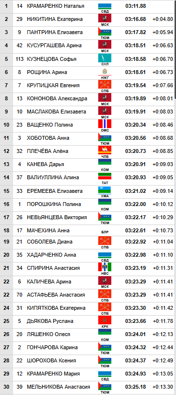 📌 "Жемчужина Сибири" (Тюменская область) Спринт 1,25км СВ. Женщины В Тюмени стартовал важнейший старт для нашей молодежи - первенство страны по лыжным гонкам среди спортсменов 21-23 лет. Состав участников впечатляет, ведь большинство лидеров наших лыж проходят именно по этой возрастной категории. В сегодняшней гонке на старт вышли все сильнейшие, тут не досчитались лишь Дарьи Непряевой. Квалификацию вновь в доминирующем стиле выиграла Наталья Каамаренко, также не удивили места в тройке от Екатерины Никитиной и Лизы Пантриной. А вот следующие позиции за Ариной Кусургашевой, Софьей Кузнецовой и Ариной Рощиной - скорее удивили. Рощина в Кубке уже порой отлично бегала, а Кузнецова фамилия новая, как показатель и старт с дальних номеров. Дальше много интересных имён ещё. Ещё по предварительным забегам бросалась в глаза уверенность Арины Рощиной. Так случилось и в финале! Арина грамотно вышла со спуска и просто фа
