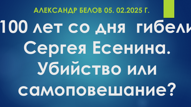 100 лет со дня гибели Сергея Есенина. Убийство или самоповешание? Александр Белов 05. 02.2025 г.