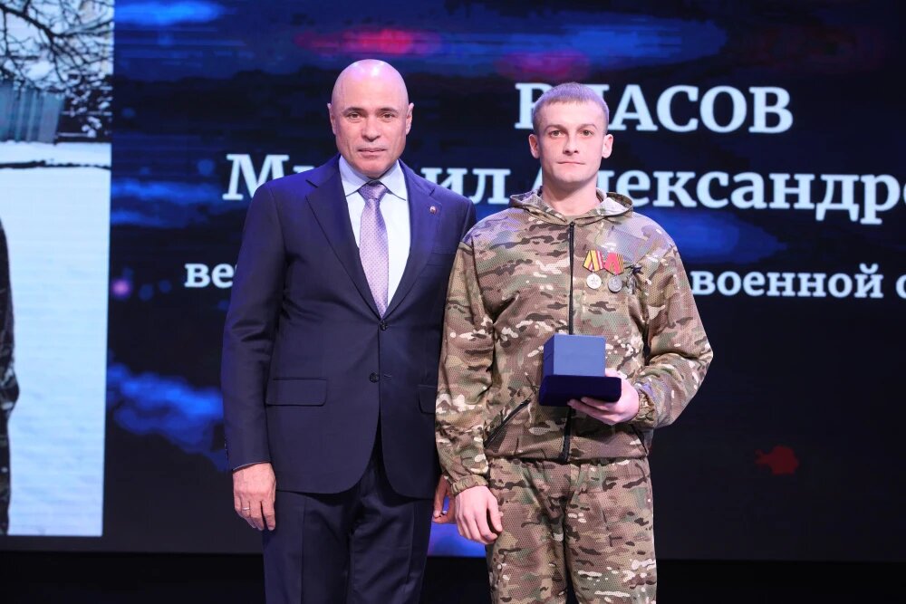 Михаил Водопьянов, Суламбек Осканов - наши земляки в числе первых удостоены высочайших званий «Герой Советского Союза» и «Герой Российской Федерации». Имена проявивших героизм Эдуарда Белана, Андрея Теперика, Олега Пешкова знает вся Россия. Нынешнее поколение солдат и офицеров России бережёт и приумножает ратные традиции своих дедов и прадедов. В память о погибших в ходе исполнения своего воинского долга была объявлена минута молчания. Героев СВО зал приветствовал стоя.