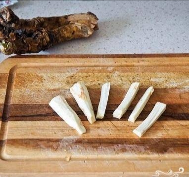 Хреновуха - это никакое не ругательство, а очень вкусная алкогольная настойка, которую несложно приготовить в домашних условиях. Вкуснее, благороднее и оригинальнее, чем покупная водка. Попробуйте! Хрен очищаем от шкурки и нарезаем довольно крупной соломкой. То же самое делаем и с имбирем, только его режем на более мелкие кусочки. Кладем в банку хрен, имбирь, немного гвоздики и перца горошком. Гвоздику и перец можно и не класть, они в хреновухе не обязательны - но мне так больше нравится. Заливаем в банки водку. Заливаем не всю - где-то 300 граммов оставляем, она нам еще пригодится. Закрываем банку и ставим в сухое прохладное темное место. Например, в кладовку или шкаф. Через 5 дней достаем банку из кладовки. Если настаивать дольше, то напиток может получиться слишком крепким :) Процеживаем получившуюся хреновуху, чтобы очистить ее от всего, что мы в нее добавляли. Переливаем в чистую баночку. Наливаем стакан хреновухи, размешиваем в ней наш мед, и наливаем обратно в банку. Заливаем ос