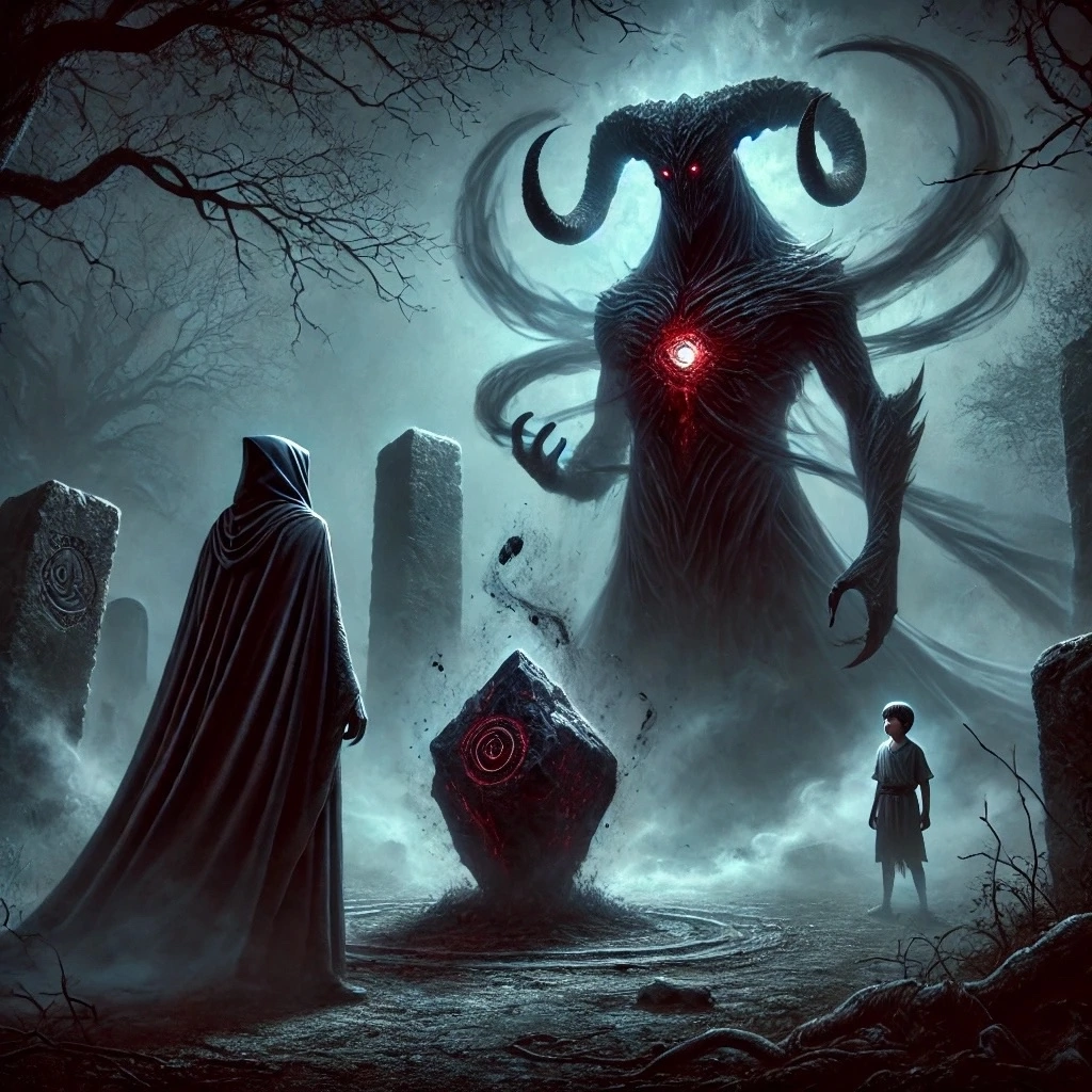 Тени ринулись вперёд, охватывая мальчика, его попытка к бегству была обречена. Он вскрикнул, но его крик был поглощён тьмой. Всё вокруг исчезло.