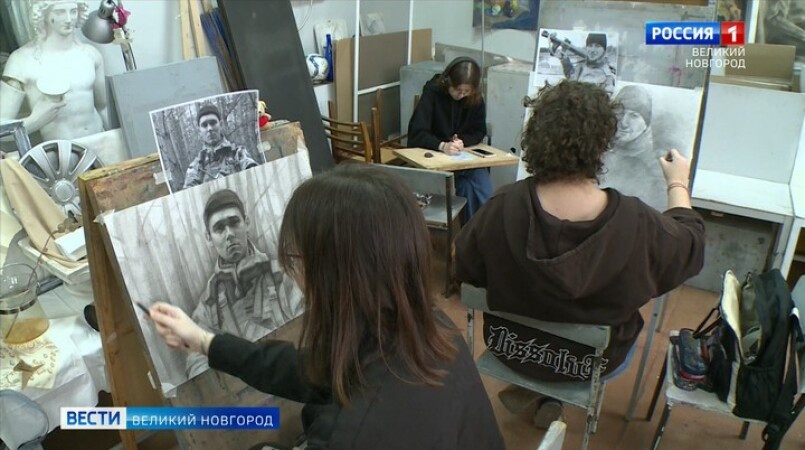 Сегодня по проекту «Славим СВОих бойцов», который поддержали некоммерческая организация «Музизон», Союз художников России и фонд Защитники Отечества, в выставочном зале Новгородского колледжа искусств открылась выставка портретов героев спецоперации. Чтобы поддержать семьи погибших участников СВО, студенты сели за мольберты, решив по фотографиям написать портреты воинов. К созданию портретов погибших героев приложили свой талант более 50-ти студентов колледжа. Это дело объединило учащихся сразу нескольких направлений — не только художественного, но и дизайнерского, и тех, кто работает с керамикой. Задача перед начинающими мастерами стоит ответственная и сложная. Чтобы её облегчить, студенты сами выбирали снимок, с которого нужно писать портрет. А ещё начинающие художники решили создавать авторские открытки. Здесь они применяют более широкую палитру — от аппликаций до рисунков гуашью. Адресаты этих поздравлений — участники СВО и их родные, которые станут почётными посетителям