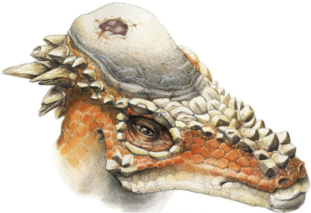 Пахицефалозавр носит Естественный шлем Пахицефалозавр знаменит своим удивительно толстым черепом, верхняя часть которого представляет собой костный купол толщиной около 23 сантиметров. Удивительно, но известно, что их черепа меняют форму по мере взросления, и на какое-то время это заставило многих учёных поверить, что разные стадии жизни этих животных на самом деле были совершенно разными видами. Предполагается, что эти динозавры использовали свои твёрдые черепа, чтобы бодаться с соперниками за самок, хотя некоторые учёные считают, что их позвонки не могли быть достаточно прочными, чтобы выдержать такие удары без серьёзных травм. С момента открытия этих существ в палеонтологическом сообществе не утихают споры, и было проведено множество исследований, чтобы попытаться это выяснить. Одно исследование показало, что у 22% всех видов пахицефалозавров есть признаки повреждений черепа, что подтверждает теорию о том, что они естественным образом бились головами. Другие считают, что эти наросты