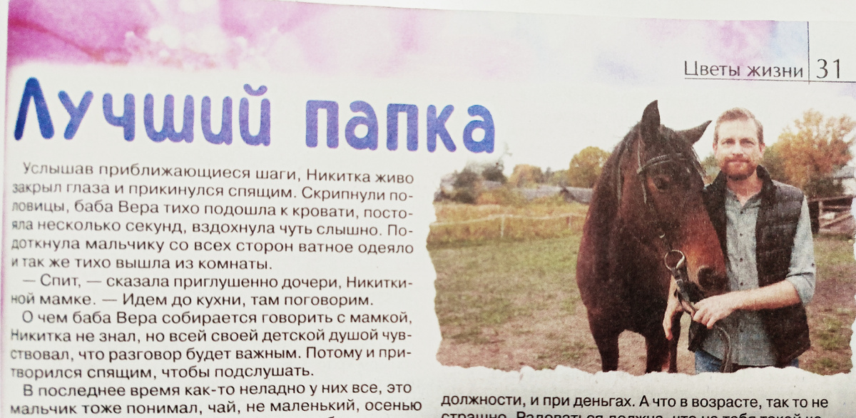 Мамка поначалу отчего-то краснела, когда дядь Васю видела, а потом нормально, улыбаться стала и даже в клуб два раза с ним ходила. И так радовалась, глядя, как они вдвоем с Никиткой мужскими делами занимаются, прям светилась. И Никитка радовался, потому что уже скумекал, что скоро у него будет папка, как у всех пацанов, даже лучше. Дядь Вася, он вон какой, рукастый, да сильный. Его даже кони слушаются.