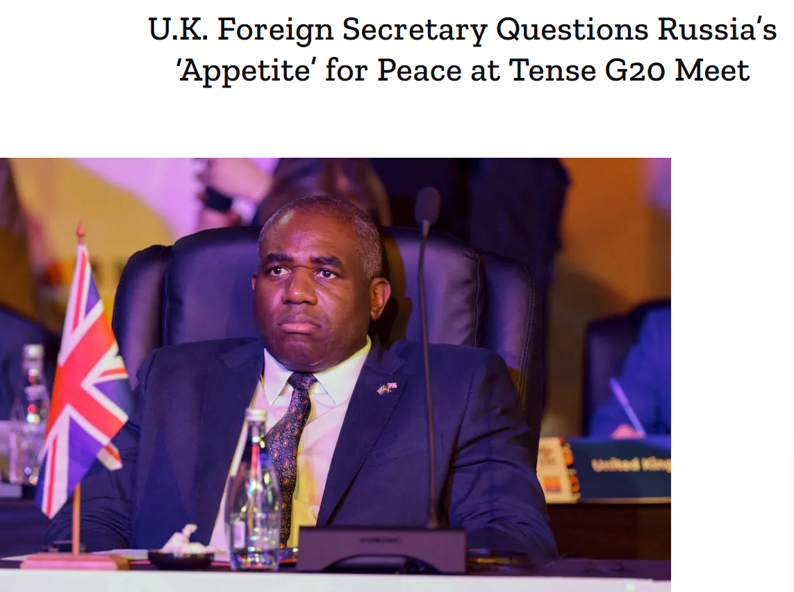 Министр иностранных дел Великобритании поставил под сомнение "аппетит" России к миру на напряженной встрече G20.