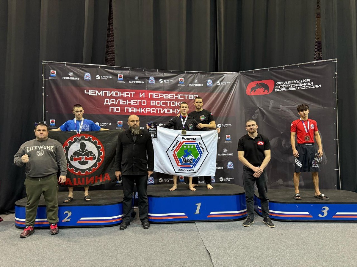 Команда Амурской области заняла третье место в общекомандном зачете в соревнованиях по панкратиону. Амурские спортсмены завоевали 24 медали на чемпионате и первенстве ДФО по панкратиону (вид единоборств). Соревнования прошли в Елизово на Камчатке. Об этом рассказали в пресс-службе Министерства по физкультуре и спорту Амурской области. В турнире участвовали более 250 атлетов из шести регионов Дальнего Востока. Нашу область представили 40 спортсменов из Благовещенска (СПК «Машина»), Белогорска (СК «Родина») и Тамбовки (спортшкола), включая самых юных, восьмилетних ребят. За три дня соревнований амурчане завоевали 13 золотых, 5 серебряных и 6 бронзовых медалей. Победители и призеры получили право участвовать в первенстве России в Новосибирске и чемпионате страны в Москве. Фото t.me/min_fks28 Читать на сайте ТЕЛЕПОРТ.РФ Еще больше новостей в нашем телеграм-канале https://t.me/amurobl