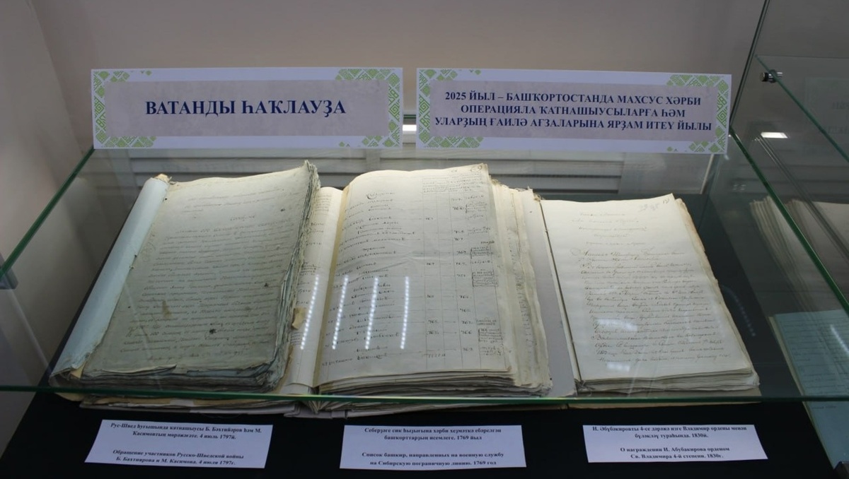 Национальный архив республики подготовил выставку архивных документов и печатных изданий «На защите Отечества», посвященную Году защитника Отечества в России и Году поддержки участников специальной военной операции и членов их семей в Республике Башкортостан.