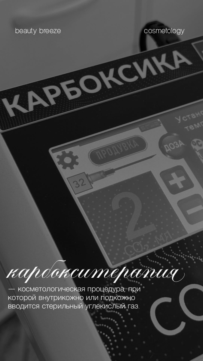 Карбокситерапия — косметологическая процедура, при которой внутрь или под кожу доставляется двуокись углерода. В ответ на избыток СО2 (гиперкапнию) в тканях током крови доставляется большое количество кислорода в очаг поражения. Благодаря этому активизируется местный кровоток, метаболизм клеток и синтез коллагена. Карбокситерапия для живота и боков помогает: — локально уменьшить объем жировой ткани; — смоделировать фигуру; — подтянуть кожу; — убрать стрии (растяжки); — уменьшить выраженность целлюлита (при прохождении курса процедур – полностью убрать его); — устранить отечность; — сгладить рубцы. Запишитесь на бесплатную консультацию и узнайте еще больше о процедуре карбокситерапия. Ждем вас в Beauty Breeze!❤️ _____________________ Запись: • WhatsApp • +7 495 602 02 78 Мы работаем каждый день с 10:00 до 22:00. 📍ул. Пудовкина 7, к.Б