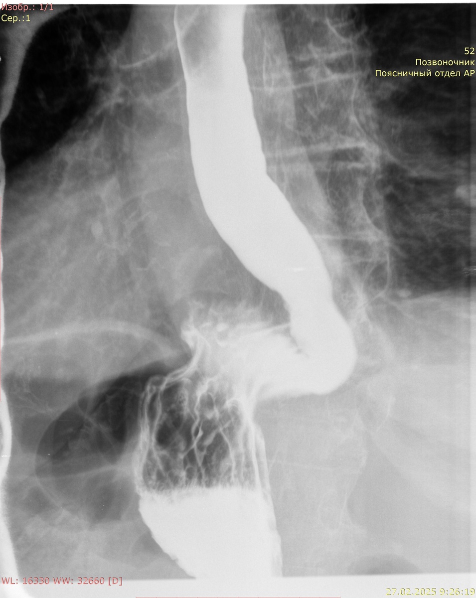 Заключение: картина фиксированной грыжи пищеводного отверстия диафрагмы 4 ст.