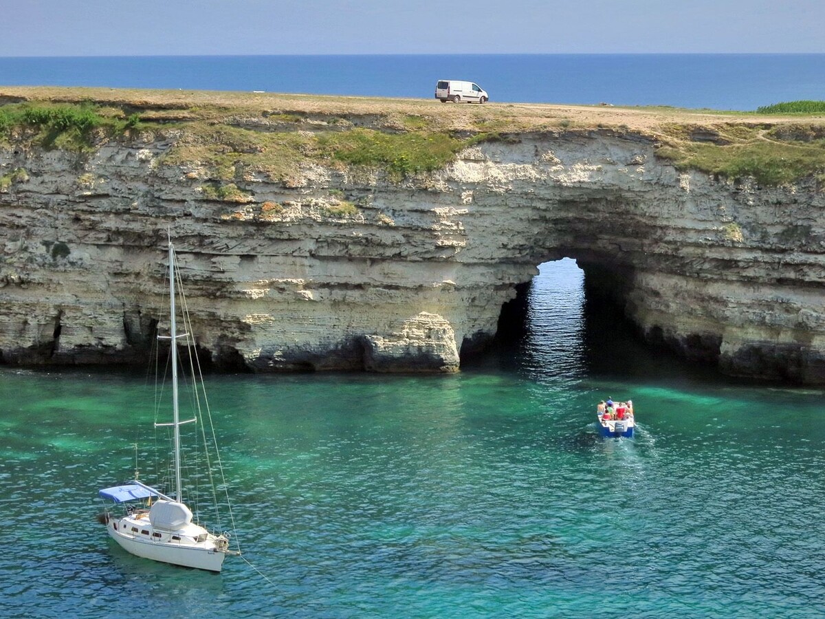 Оленевку нужно называть именно так: ОлЕневка, а не Оленëвка, иначе местные жители обижаются. Эти места больше известны гостям Крыма по кемпингам, Тарханкуту и "Крымским Мальдивам". Отдых в этих краях, скажем так - на любителя. Всё-таки степь, жара, ветер, жирные медузы, периоды холодных течений, когда при плюс тридцать в воздуха - вода в море просто ледяная, инфраструктура которая только начинает развиваться - расслабленному отдыху не способствует. По крайней мере - до августа. А вот с августа начинается сказка: светящийся планктон в чистейшей тёплой воде, звездопады, которые именно здесь просто шикарные, отличный дайвинг и нереальная красота закатов. **** Мы в привезли мою дочь, которая на июль устроилась работать в детский лагерь. Мне впервые за три года пришлось стряхивать пыль с водительского удостоверения и рулить 160 км на запад:). Слава Автодору, который превратил наши дырявые "стиральные доски" в нормальные дороги даже в самых удалённых уголках! Понятно, что в силу слиш