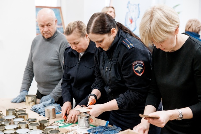 Сотрудники отделов полиции № 9, 10 и 11 УМВД России по городу Омску приняли участие в Вахте помощи В Межнациональном и межконфессиональном центре гуманитарной помощи вместе с ветеранами органов внутренних дел полицейские заливали окопные свечи и тем самым вносили вклад в общее дело - поддерживали наших ребят на передовой. Мастер-класс по изготовлению маленького пламени провёл специалист центра - Дамир Абдразаков. Он рассказал принцип укладки картонных нарезок в жестяную банку, полицейские быстро ловили суть и работа пошла споро. Одна заготовка, другая. Далее - дело за малым: пустое пространство заполняют расплавленным воском, и свечи готовы. Порядка 250 штук, выполненных офицерами и ветеранами буквально за час, в скором времени отправятся в зоны боевых действий. К сведению, большая банка горит около 12 часов, маленькая - 5-6 часов. - Когда собирала свечу, - поделилась заместитель начальника по работе с личным составом отдела полиции №11 УМВД России по городу Омску Наталья Михель, - пой