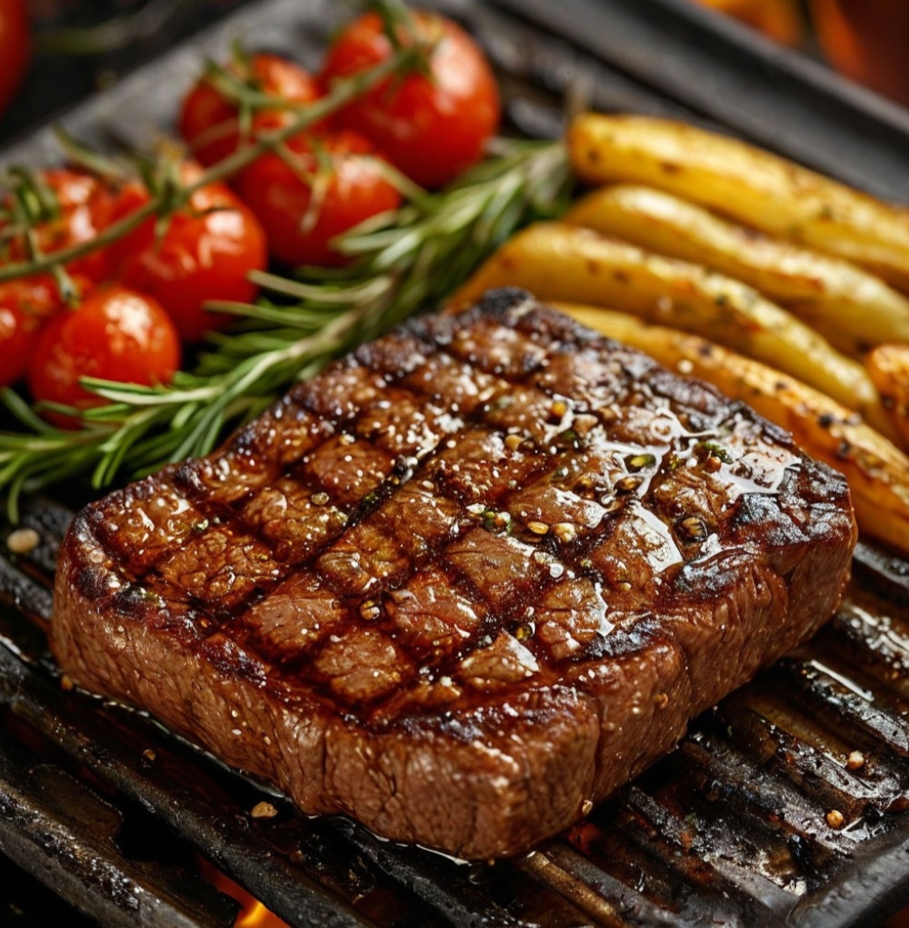 Идеальный стейк заслуживает идеальной подачи. Подавайте его с простыми гарнирами, которые не перебивают вкус мяса: овощи на гриле, картофель фри или салат из свежих овощей. Не забудьте про соус: классический пепперсоус или соус на основе красного вина станут отличным дополнением.