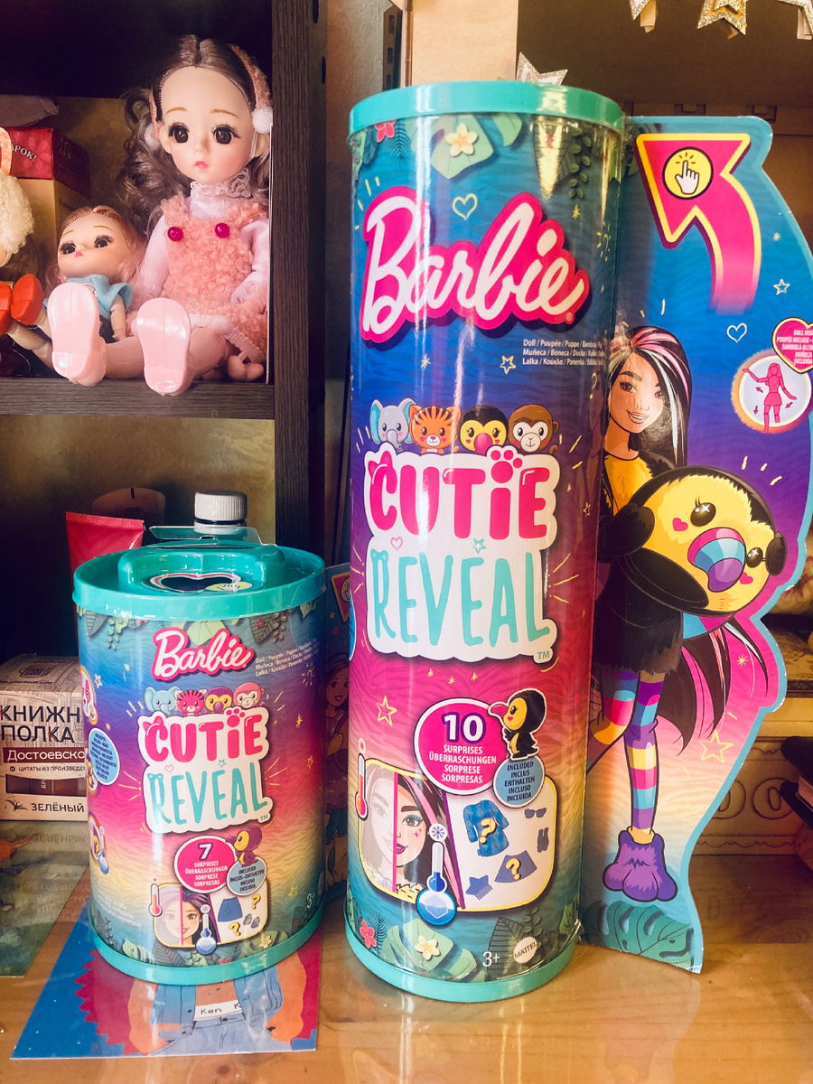 Как же хочется в отпуск… Улететь бы куда-нибудь в тропики, подальше от февральского авитаминоза… Но мечта остаётся мечтой. А чтобы мечталось ещё слаще и фруктовее, я распакую самую яркую парочку из всей серии милашек-проявляшек! Забавные туканы обязательно поднимут настроение в самую противную погоду! Я специально припасла на этот случай аж двоих – маму и дочку. Начнём с дочки! Яркий плюшевый костюмчик дополняется накидкой, изображающей крылья. Накидка крепится на резинках к запястьям куклы. Всего в комплекте три пакета с «сюрпризами». Посмотрим, что там… В первом – разноцветная юбка на резинке. Во втором – по традиции, сонный товарищ. И в третьем – лиловые туфельки. В общем-то негусто, но это и не так важно. Кукла сама по себе очень интересная даже в зверином облике – давно ли вы встречали шарнирную Челси? Теперь познакомимся поближе. Маленькая модница одета в молдированный купальник с фирменной Барби-радугой, а ноги выкрашены в цвет Тиффани с блёстками, имитируя цветные колготк