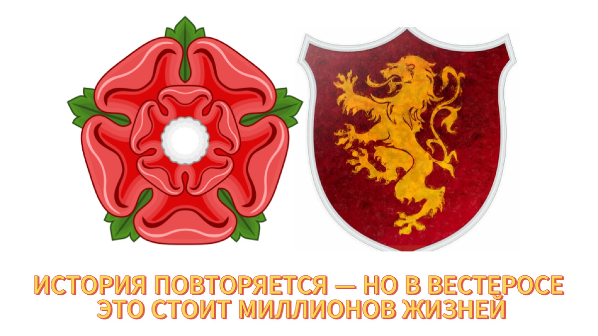 🌹 «Кровь, предательство и трон — история повторилась, но с драконами» Война Алой (Ланкастеры) и Белой (Йорки) розы (1455–1487) — кровавый конфликт за английский трон. Джордж Мартин признавался: «Это моё главное вдохновение». Сходства бросаются в глаза: «История не повторяется, но рифмуется. В Вестеросе — с кровью». Мартин превратил историю в фэнтези, добавив магию, но сохранив суть: «Я взял историю и сказал: „А что, если тут появится армия мертвецов?“» Прототипы героев «Игры престолов»: «Ричард III не убивал принцев. Но победители пишут историю» — намёк на Тириона. Даже романтические линии имеют исторические корни: «Историю пишут кровью. И я добавил побольше» (Мартин). В реальности война закончилась браком Генриха Тюдора и Елизаветы Йоркской, объединив розы. В «Игре престолов»: «История — не учебник. Она полна „а что если?“» #ВойнаРоз #Ланнистеры #Старки #ИсторическиеПрототипы