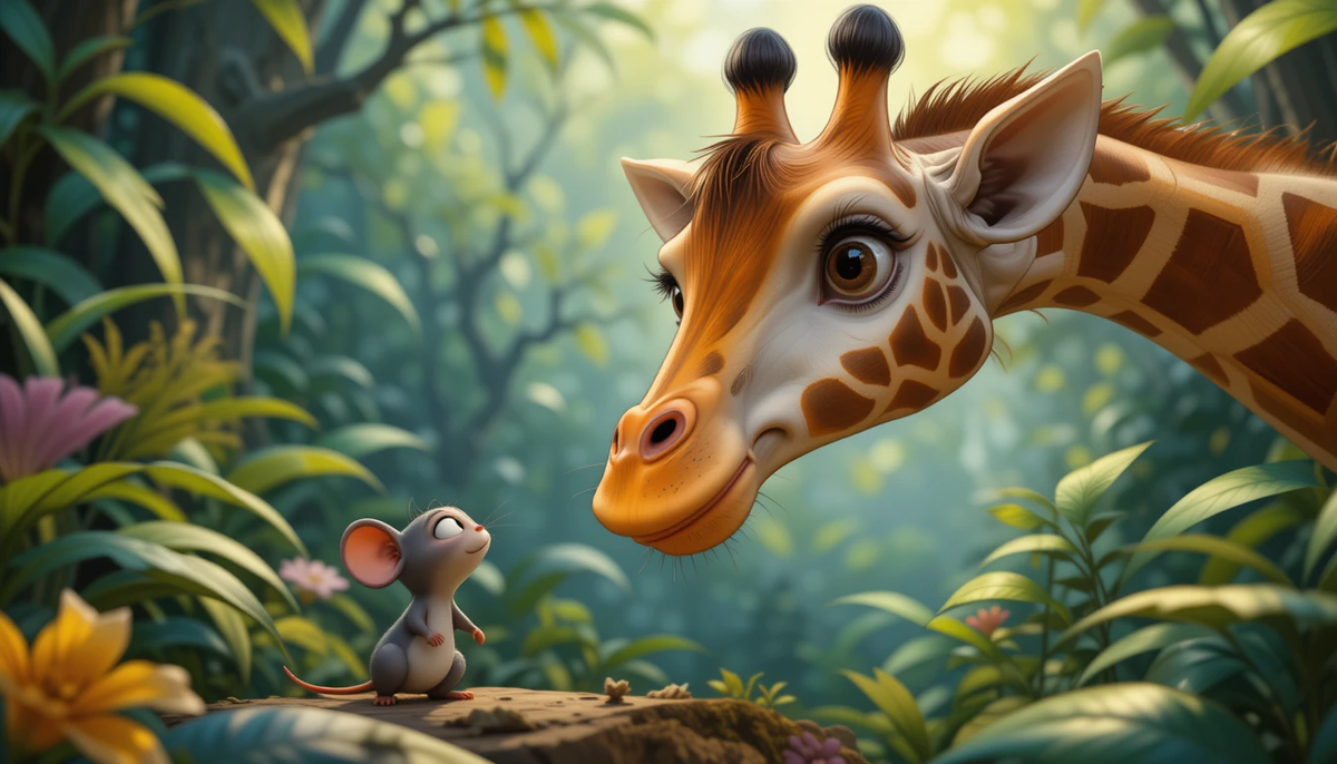 В густой африканской чаще, где солнечные лучи с трудом пробиваются сквозь плотную листву, жил-был маленький мышонок по имени Пип. Он был не просто мышонком, а настоящим философом, постоянно размышляющим о смысле жизни, особенно после сытного обеда. Его лучшим другом был бабуин по имени Бамби, известный своим беззаботным оптимизмом, порой граничащим с легкомыслием.