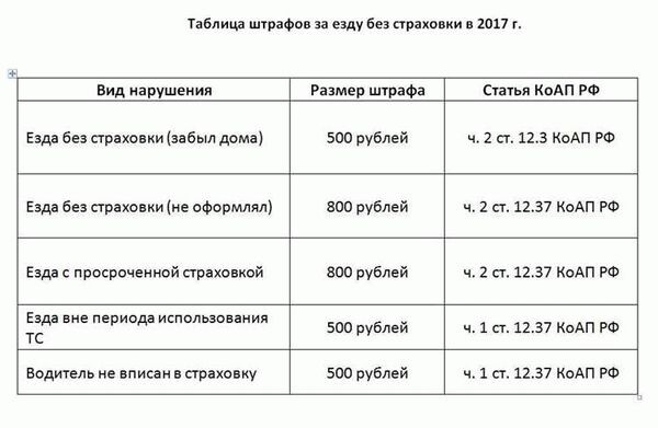 Штраф за отсутствие страховки на автомобиль в 2025 году: сколько придётся заплатить? В современном мире наличие страховки на автомобиль является обязательным условием для его эксплуатации. Однако многие водители пренебрегают этим правилом и ездят без страховки. В этой статье мы рассмотрим, какие штрафы предусмотрены за отсутствие страховки и как они рассчитываются. Если у вас нет страховки или она просрочена, вам грозит штраф в размере от 500 до 800 рублей. Если вы управляете автомобилем без страховки, вам также грозит штраф в размере от 500 до 800 рублей. Использование фальшивой страховки или страховки, которая не соответствует требованиям закона, также влечёт за собой штраф в размере от 500 до 800 рублей. Если срок действия вашей страховки истёк, но вы продолжаете управлять автомобилем, вам также грозит штраф в размере от 500 до 800 рублей. Штрафы за отсутствие страховки рассчитываются исходя из нескольких факторов: * количество дней просрочки; * регион проживания; * м