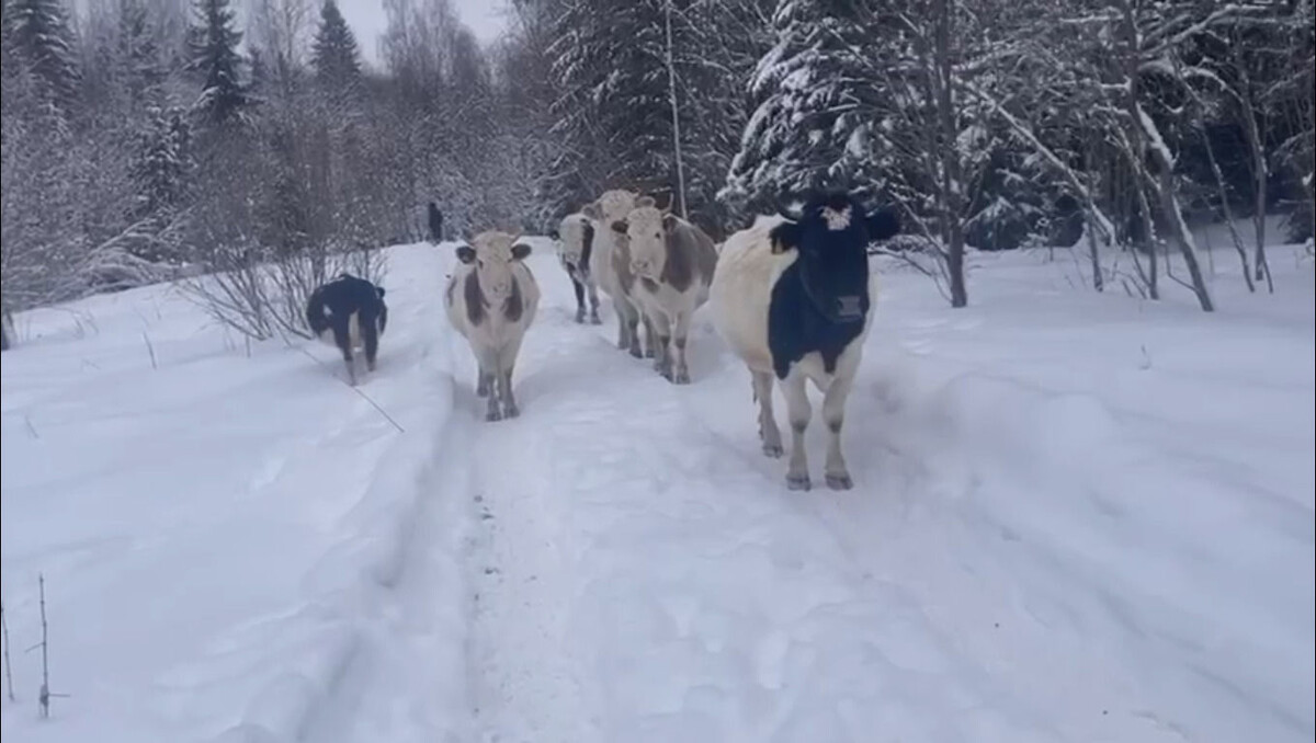 Пресс-служба правительства Ленинградской области показала, как стадо тувинских коров встречает прохожих на лесной дороге в Подпорожском районе, и рассказала, как животные появились в 47-м регионе. С семьей фермеров Куржепеев 58 животных приехали в Ленобласть из Тувы в 2021 году. Хозяйство получило поддержку по программе «Ленинградский гектар», купило технику для заготовки кормов и произвело 13,5 тонны мяса. «Фермеры – большие труженики, развивают производство, все взятые на себя обязательства выполнили, и область выполняет обязательства в отношении хозяйства. Готовы и дальше оказывать поддержку», – отметил во время посещения хозяйства заместитель председателя правительства Ленобласти по АПК Олег Малащенко. Отмечается, что тувинские коровы при наличии воды и корма могут круглый год жить под открытым небом. Они легко переносят морозы. Напомним, ранее мы писали о том, что под Петербургом увидели целое стадо кабанов.