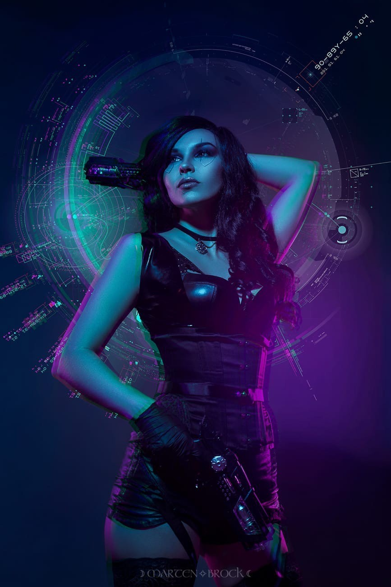 Представь себе: не чопорные средневековые дворцы и магические порталы, а неоновые огни, глитч-эффекты и техномагия. Черная кожа, панковские подтяжки, высокие ботфорты и, конечно же, тот самый властный взгляд Йеннифэр, от которого замирает даже закаленный ведьмак. Эта версия чародейки идеально вписалась бы в мрачный и жестокий мир Найт-Сити, где она могла бы быть не просто могущественной магичкой, а элитным нетраннером, хакером, способным ломать систему так же легко, как сердца мужчин. Готов нырнуть в альтернативную реальность, где Йен ведет игру по своим правилам? 😈✨ Фэндом: Cyberpunk2077
