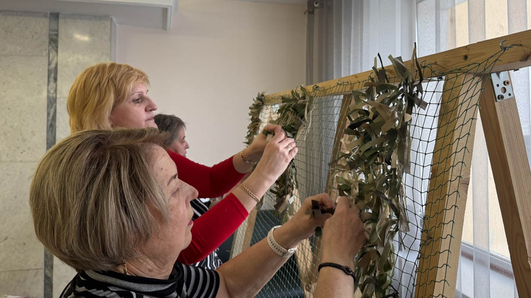 Волонтёры Йошкар-Олы осваивают технику плетения накидок для снайперов. По вторникам и пятницам в городской мэрии кипит работа: кто-то нарезает ленты из спанбонда, кто-то плетёт сети или нашлемники.