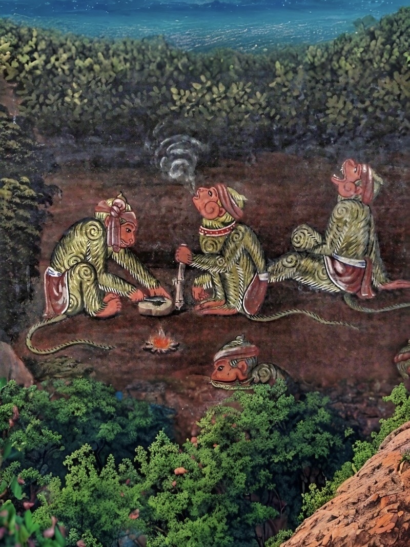 Уже в титрах вы видите очень тайскую особенность — храмовую живопись. Такой сюрреализм можно увидеть в Королевском Дворце в Бангкоке. И я как-то постила свою коллекцию в соцсетях.
