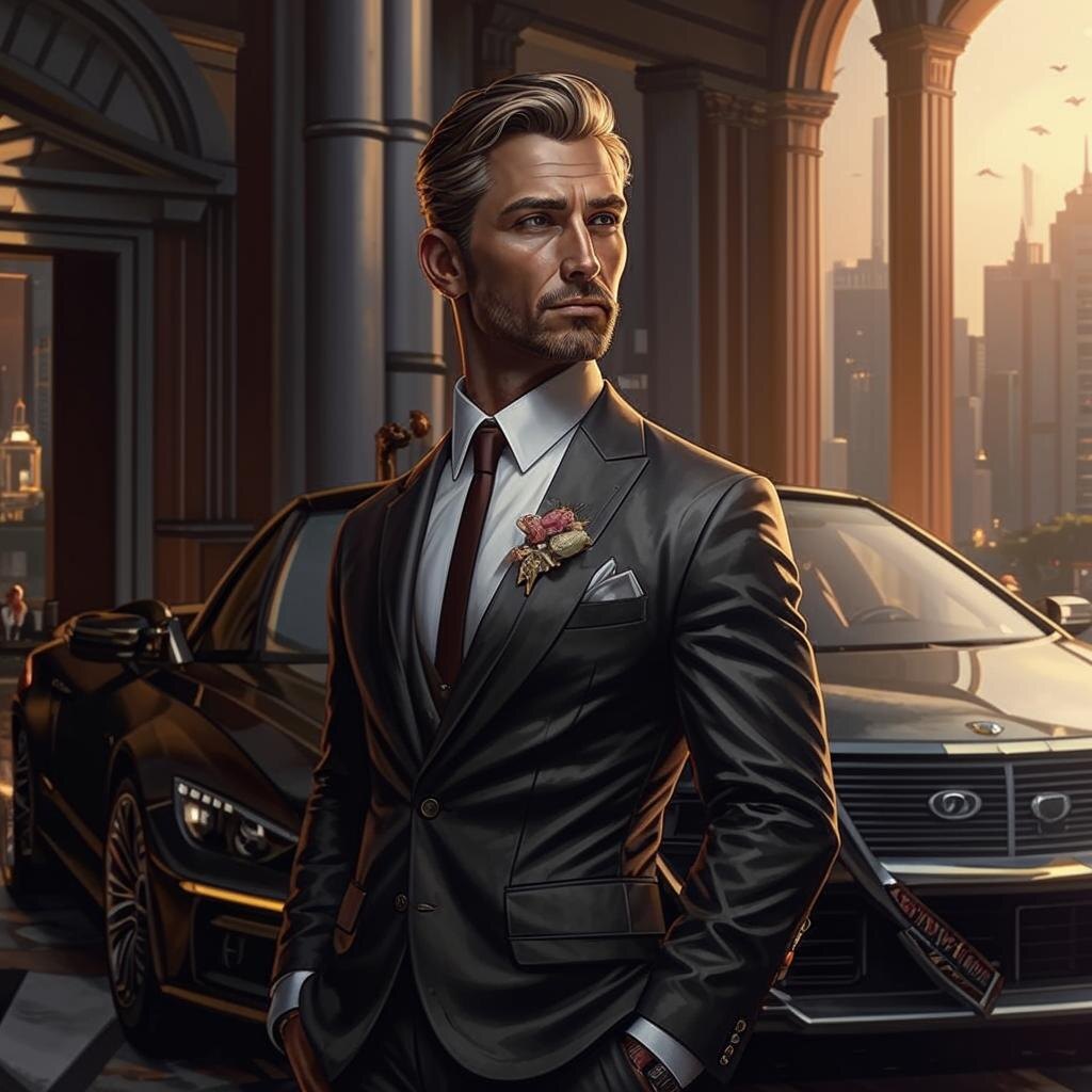 Костюм сидел идеально, подчёркивая каждую деталь его фигуры. Не было ни малейшего намёка на небрежность — всё было выверено до миллиметра.