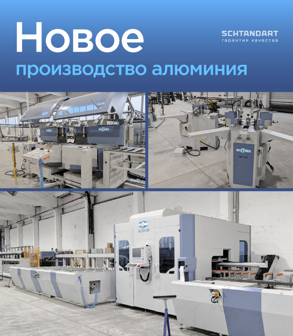 Ни для кого не секрет, что алюминиевые конструкции набирают всё большую популярность, как в коммерческом, так и в индивидуальном строительстве. В связи с этим SCHTANDART не только расширяет ассортимент продукции, но и существенно усиливает производственные возможности алюминиевого направления. Сообщаем о запуске нового алюминиевого производства. Проект нацелен на дополнительное увеличение мощностей, расширение ассортимента, повышение качества выпускаемой продукции, а также сокращение сроков изготовления. Новое производство было успешно запущено в конце января 2025 г., и на сегодняшний день готово к выполнению всех необходимых задач. Площадь участка увеличилась в 3 раза, существенно расширен и введен в эксплуатацию новый парк оборудования, происходит автоматизация и оптимизация производственных процессов, расширяются возможности декора. Это важный этап развития для SCHTANDART и для всех наших партнёров. Поэтому мы делимся с вами рабочим процессом и уверены, что уже в ближайшее время вы