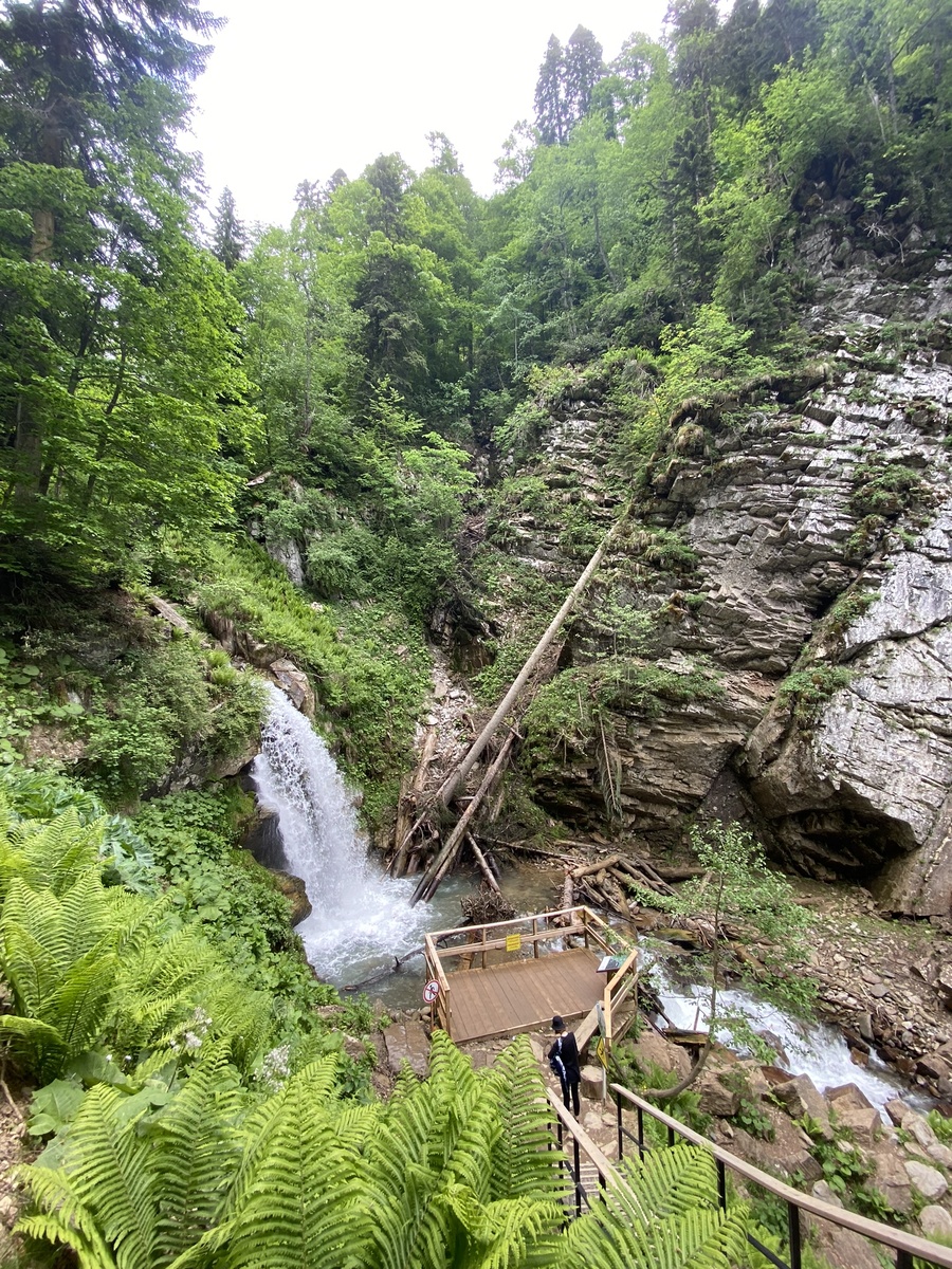 Июнь — один из лучших месяцев для прогулок по горам Сочи. В это время природа предстаёт во всей красе: снежные вершины ещё белеют, но уже пробуждается зелень, а альпийские луга покрываются ковром цветущих растений. Одно из самых впечатляющих природных явлений — цветение рододендронов, которые превращают горные склоны в настоящее произведение искусства. Парк водопадов «Менделиха» расположен на южном склоне хребта Аибга, на высоте 1470 метров. Добраться до него можно по канатным дорогам курорта "Роза Хутор". Он получил своё название от реки Менделиха, в русле которой и находятся каскады водопадов. История этого места уходит корнями в XIX век — река названа в честь семьи Менделей, живших здесь во второй половине XIX века. В парке можно увидеть семь живописных водопадов. Туристические маршруты делятся на три уровня сложности, позволяя каждому выбрать подходящий вариант: Лучшее время для прогулки по парку — утро, когда можно в полной мере насладиться природой без спешки. Мы выбрали маршрут
