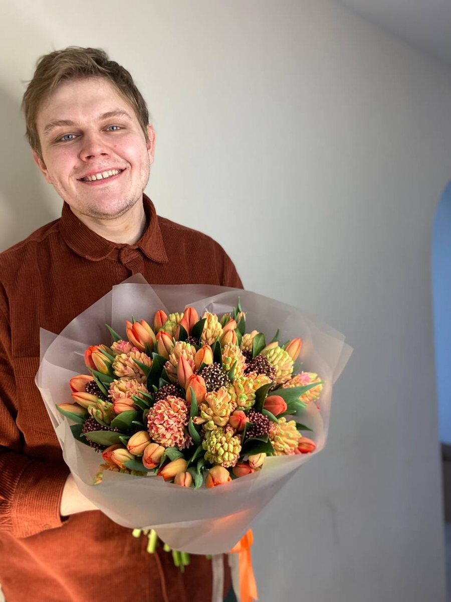 За ночь подросли конечно, но всё равно не айс. Знания по уходу за тюльпаном и правильная упаковка сделали свое дело — букеты получились очень милыми И еще одна история от Раи. В прошлом году на базе увидели малюсенькие нарциссы за смешную цену(всего 21 р в закупке). Долго не думали и взяли, голова цветка была очень хорошей. Ну и как думаешь? Они просто идеально вписались в композиции Кстати, вот вам лайфхак от Раи: такими коротенькими нарциссами получилось замени