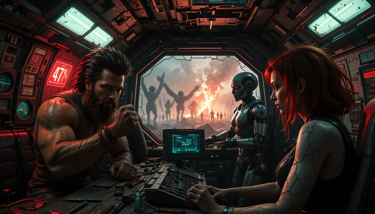 Знаете, почему мы выжили? — Он разлил мутную жидкость по стаканам. — Потому что пираты тоже боялись. Их капитан... он просто хотел поговорить. Как старый радиоприёмник, который никто не слушает. Какая музыка играет в открытом космосе? Не эта пресная тишина из учебников физики. Когда «Зодиак-12» нырнул в туманность Андромеды, обшивка завывала, как расстроенная виолончель. А потом... потом запели сирены. Те самые, что означают: «Добро пожаловать на собственную похороны». Трио невпопад: механик, шифровальщик и синтетик «Щиты на 47%! Двигатель кашляет, как старик в маршрутке!» — Вано бил кулаком по панели управления. Его борода, вечно в масляных пятнах, теперь торчала в стороны, словно испуганный ёж. Анна, не отрываясь от экрана с прыгающими цифрами, бросила: «Если выключим защиту для ремонта, они нас разорвут за пять минут. Если не выключим — двигатель взорвётся через десять». Заря стояла посередине, напоминая белую статуэтку из разбитого магазина. «Оптимальное решение: позвол