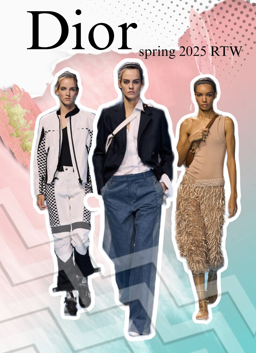 Приветствую друзья! Проведу для вас обзор и разбор показов ведущих домов моды и брендов! Весенний разбор Dior. Три цвета. Строгий черный, бежевый и белый. С цветами все понятно, разберем фасоны, вырезы и стиль. Обратим внимание на большое количество деталей, фурнитуры, слоев. Запетим акцент на плечи. Смотрим: 1. Плечи. Либо одно оголено со смещением ворота, либо плечи открыты. Асимметрия. Вот тоже акцент на одном плече: И на платьях: 2. Костюм брючный, широкие брюки с лампасами 3. Глубокие V-образные вырезы 3. Майка/топ, многослойность 4. Формула 1 в брюках, юбках и верхней одежде 5. Платье-рубашка + контрастный пояс 6. Бежевый цвет 7. Ремни, замки, карманы 8. Контрастная черно-белая верхняя одежда 9. Стяжки как элемент декора, комбинезоны 10. Неожиданно для коллекции строгой и сдержанной - бахрома и летящие воздушные платья Ссылки на статьи с обзорами весны 2025: Как вам коллекция? Буду рада обратной связи😊 Было со мной интересно - поставьте лайк за статью👍 Под