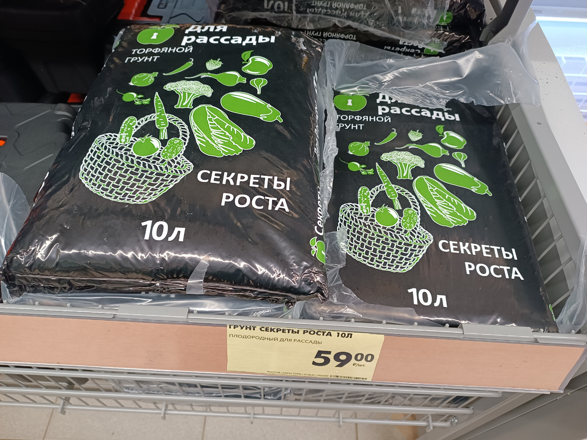 В секциях, где обычно выкладывают новинки недели, по порядку снимала, там и буду показывать. Для дачи нашла только торфяной грунт для рассады 10 л.